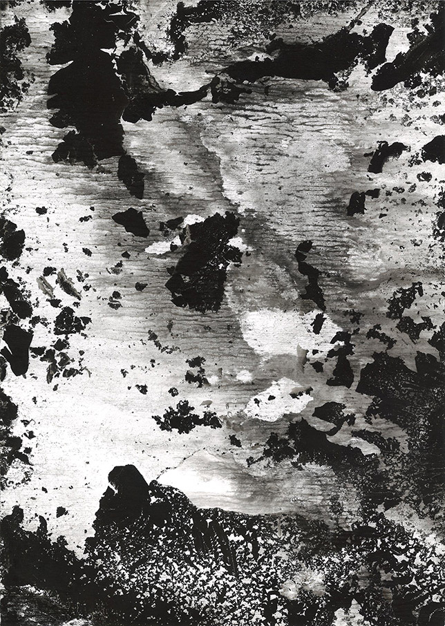 4/ ce qu’il y a de plus-profond […] la peau v/4cc, ink on cardboard, 32 x 22,8 cm, 2025, private collection