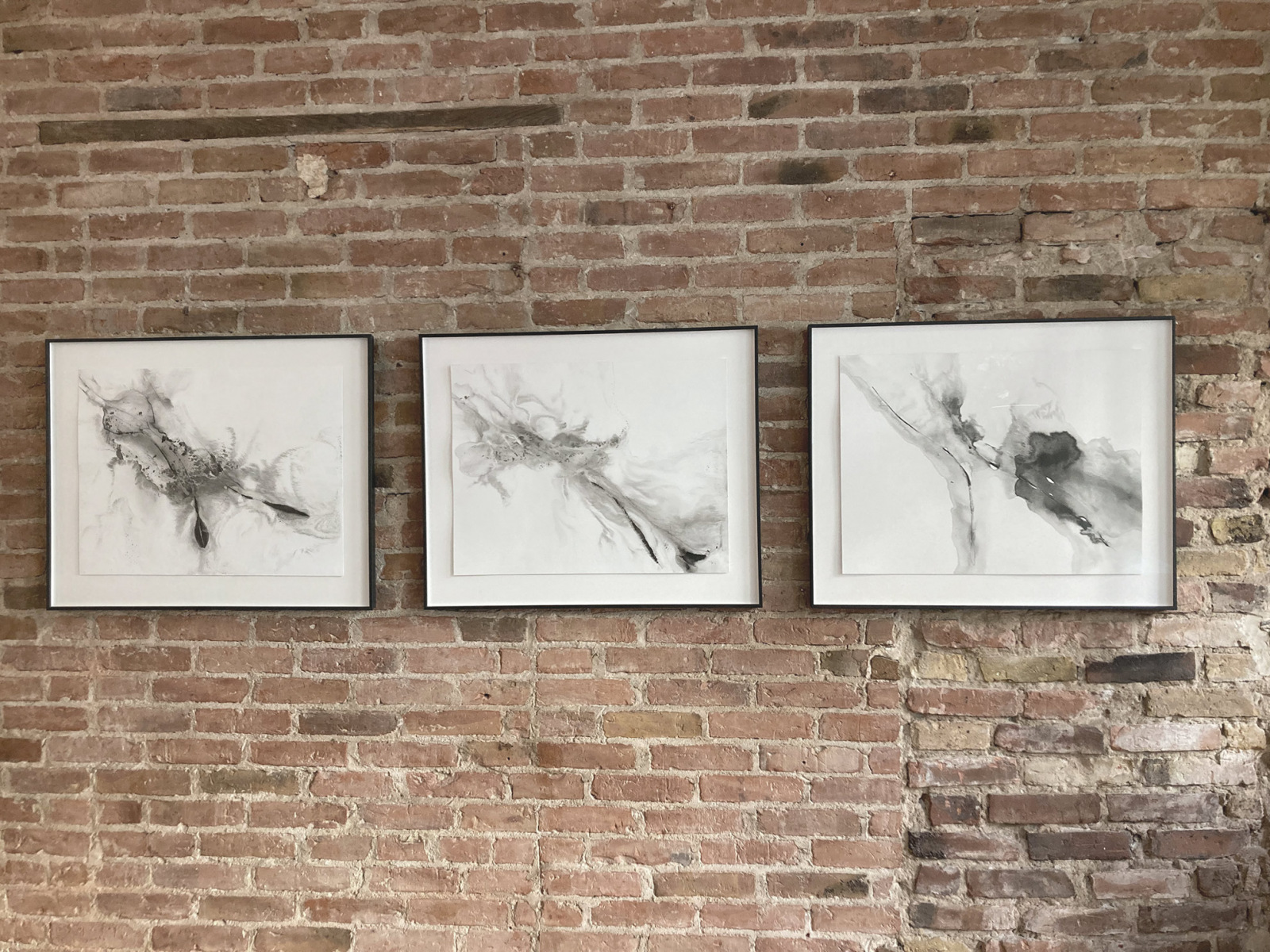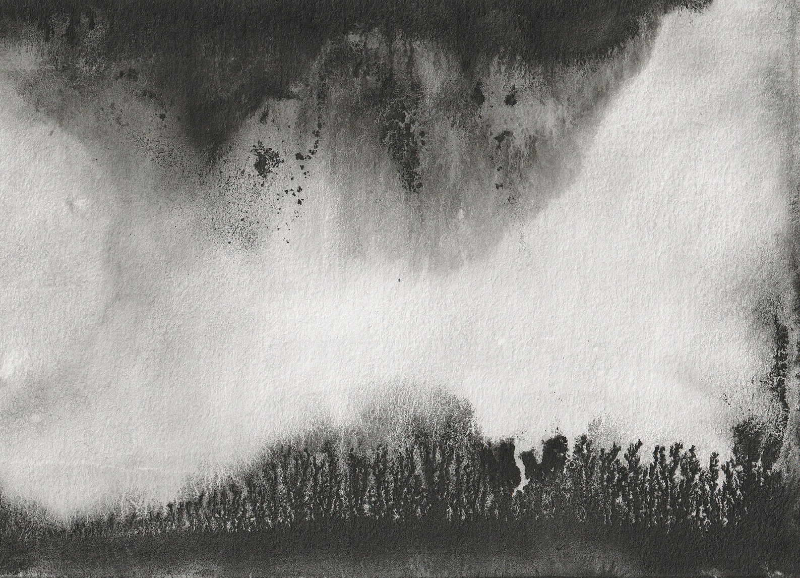 Ink on paper : two supposedly simple materials which suffice for Emilie Cognard […] to enable the poetry of possibility to become visible in its loveliest form. For the artist, the individual line is the nucleus from which complex pictorial worlds mature. […] Emilie Cognard follows intuitively her first stroke, which immediately runs again as it is bathed in water, searches for its own shape and thereby char- acterises the world that Cognard brings to light on the paper. She describes it thus : “The lines and their progressions guide the entire progress of the work “. A complex universe gradually unfolds on the paper that brings to light one of the numerous possibilities which the empty sheet of paper had already kept on hand the whole time as an option.